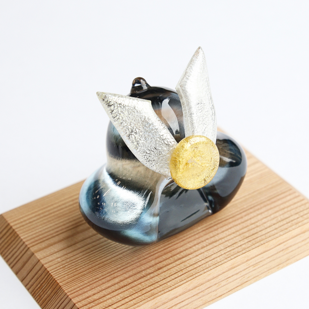千葉県の「硝子屋 PRATO PINO」さんが手掛けるこちらのガラスの兜は、片手で持てるほどのコンパクトなサイズ感。