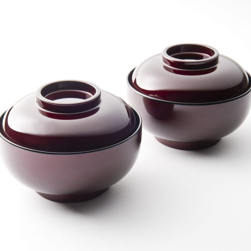 深い艶が美しい仙台生まれの漆芸「玉虫塗」のお椀セット。銀粉を蒔いた上から色のついた透明な漆を塗り重ねることで、光の反射によって表情が変わる、独特の「玉虫色」の輝きが生まれます。