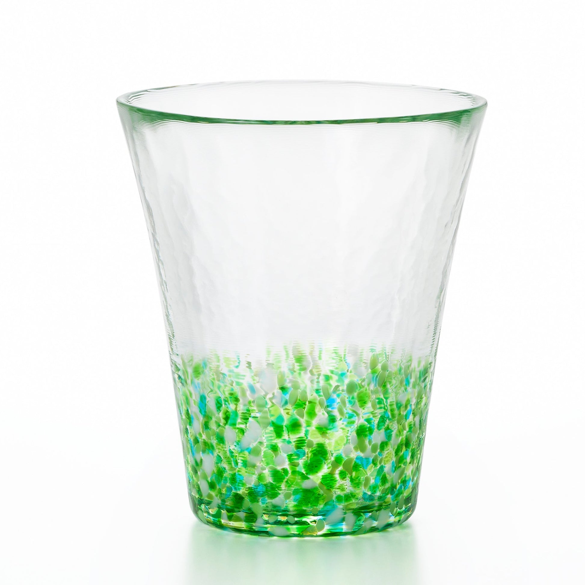 多彩な色ガラスの粒で、日本の美しい風景を表現した新形状のタンブラー。使いやすさにもこだわり、炭酸飲料やビール、アイスコーヒーにぴったりです。