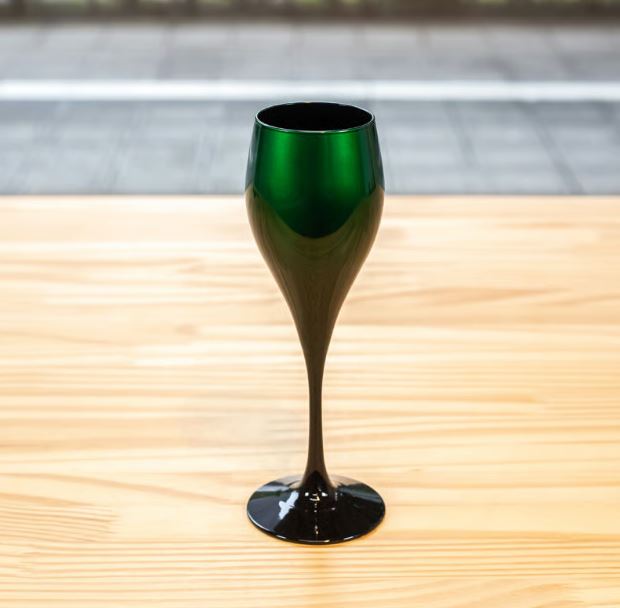 漆の艶やかさとメタリックな深緑のグラデーションが印象的なグラス。