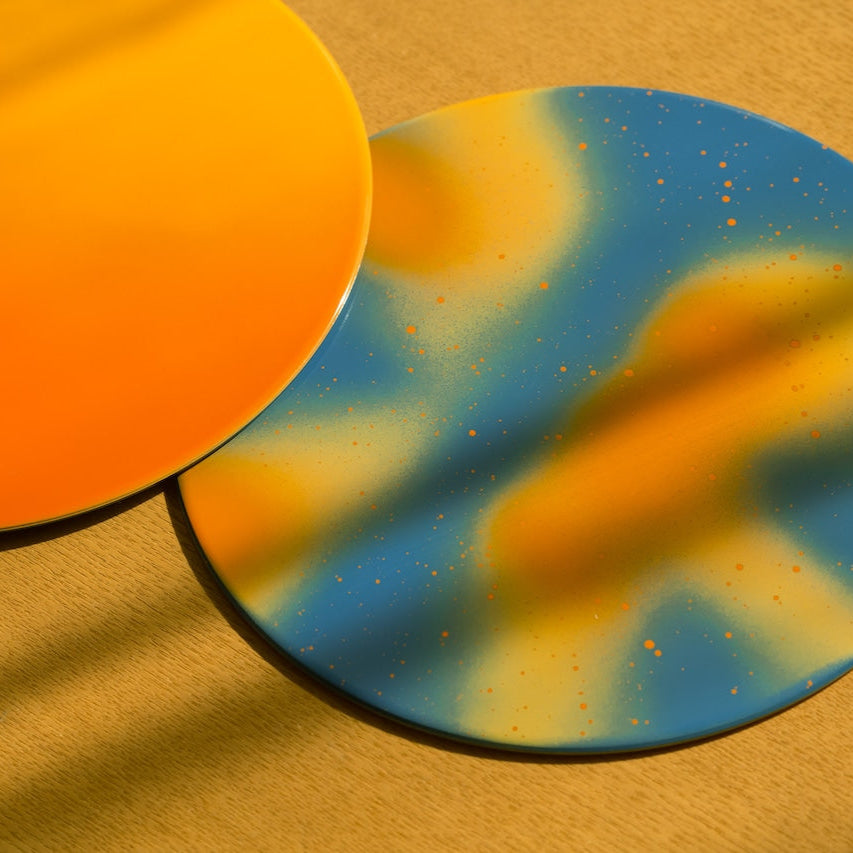 ●表面には海に差し込む光を表現した変わり塗、裏面には橙のグラデーションを施した両面塗装仕上げ。いずれも職人の手作業による吹付塗装で、繊細かつ豊かな表情を楽しめます。