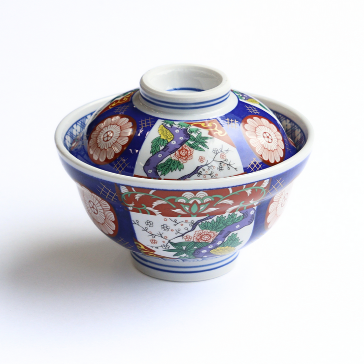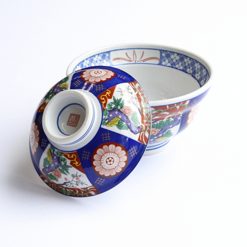 職人が試作を繰り返し誕生したのが、赤や金、緑などの色鮮やかな絵具で絵柄を描く”錦”の蓋つき丼。