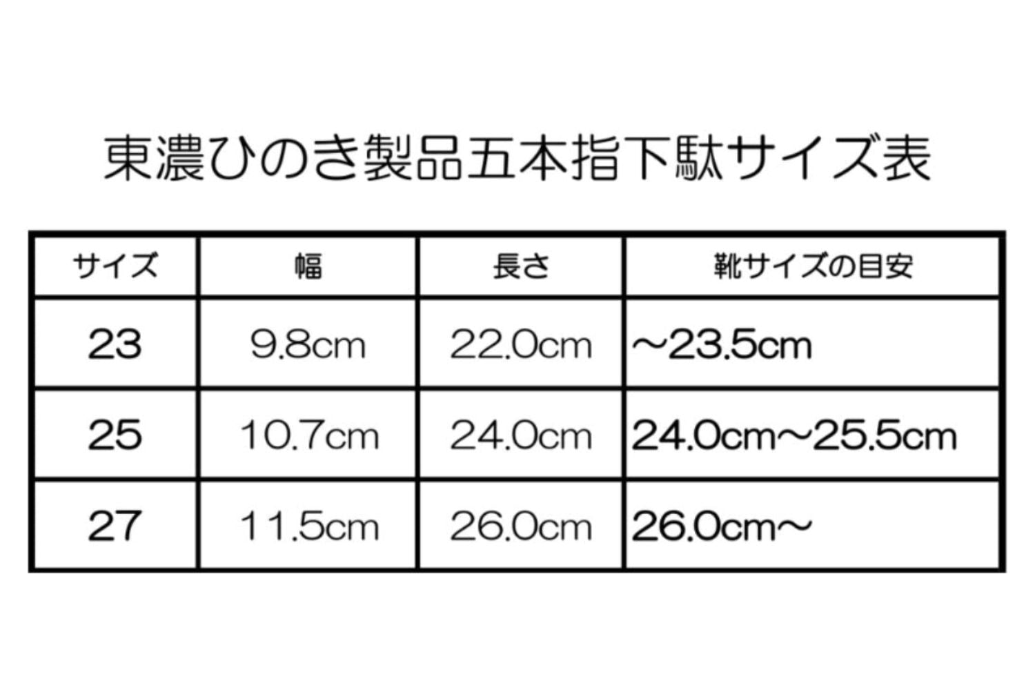 五本指下駄のサイズについて