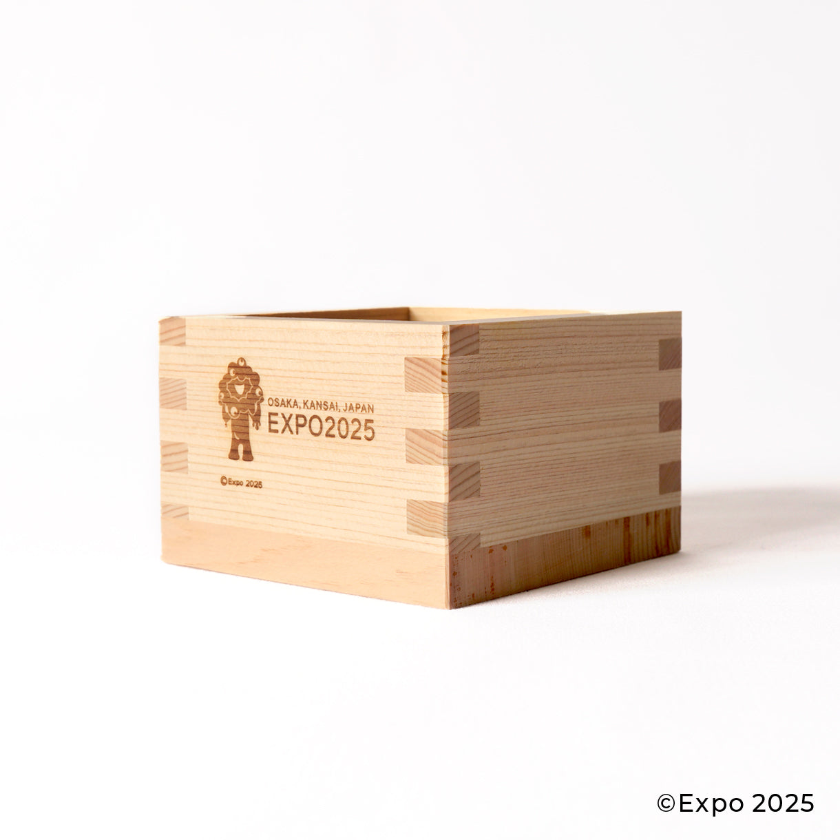 ●万博公式キャラクター「ミャクミャク」がデザインされた、公式ライセンス商品の1合枡です。