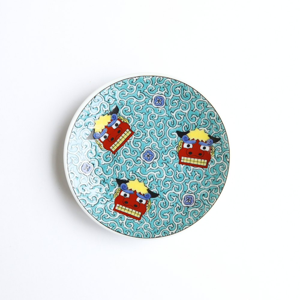 ●魔除けの獅子舞を愛らしくデザイン。爽やかな色彩と力強い吉祥柄で、食卓に福を招く九谷焼の小皿です。