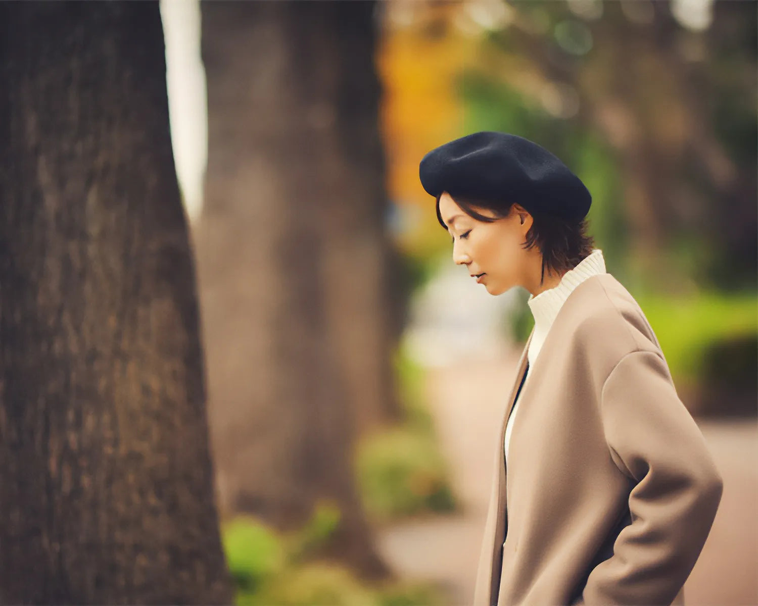 顔周りをすっきりと。ユニークな八角形フォルムの帽子