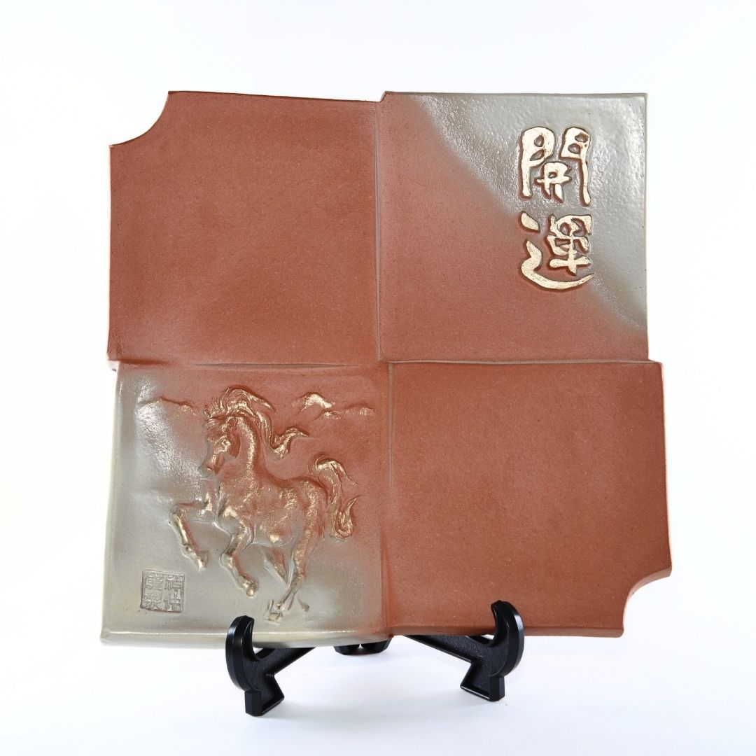 ●2026年の干支である「午(うま)」と「開運」の文字を立体的にデザイン。意匠には金色の彩色が施されています。