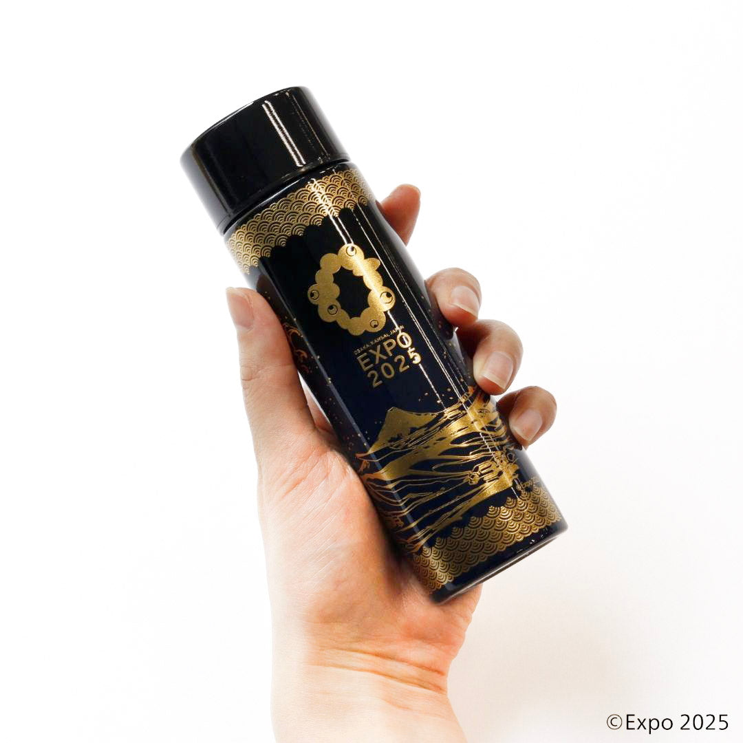 ●2025大阪・関西万博の公式ライセンス商品の手のひらサイズのステンレスボトル。