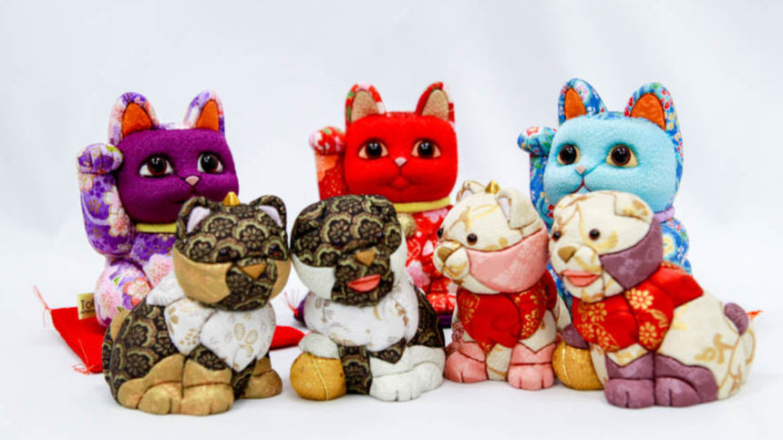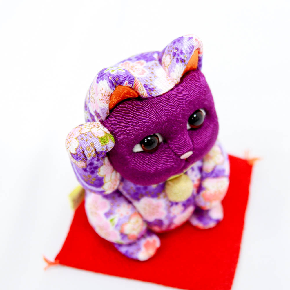 京都の華やかな「ちりめん友禅」の模様が出会って生まれた贅沢な招き猫。